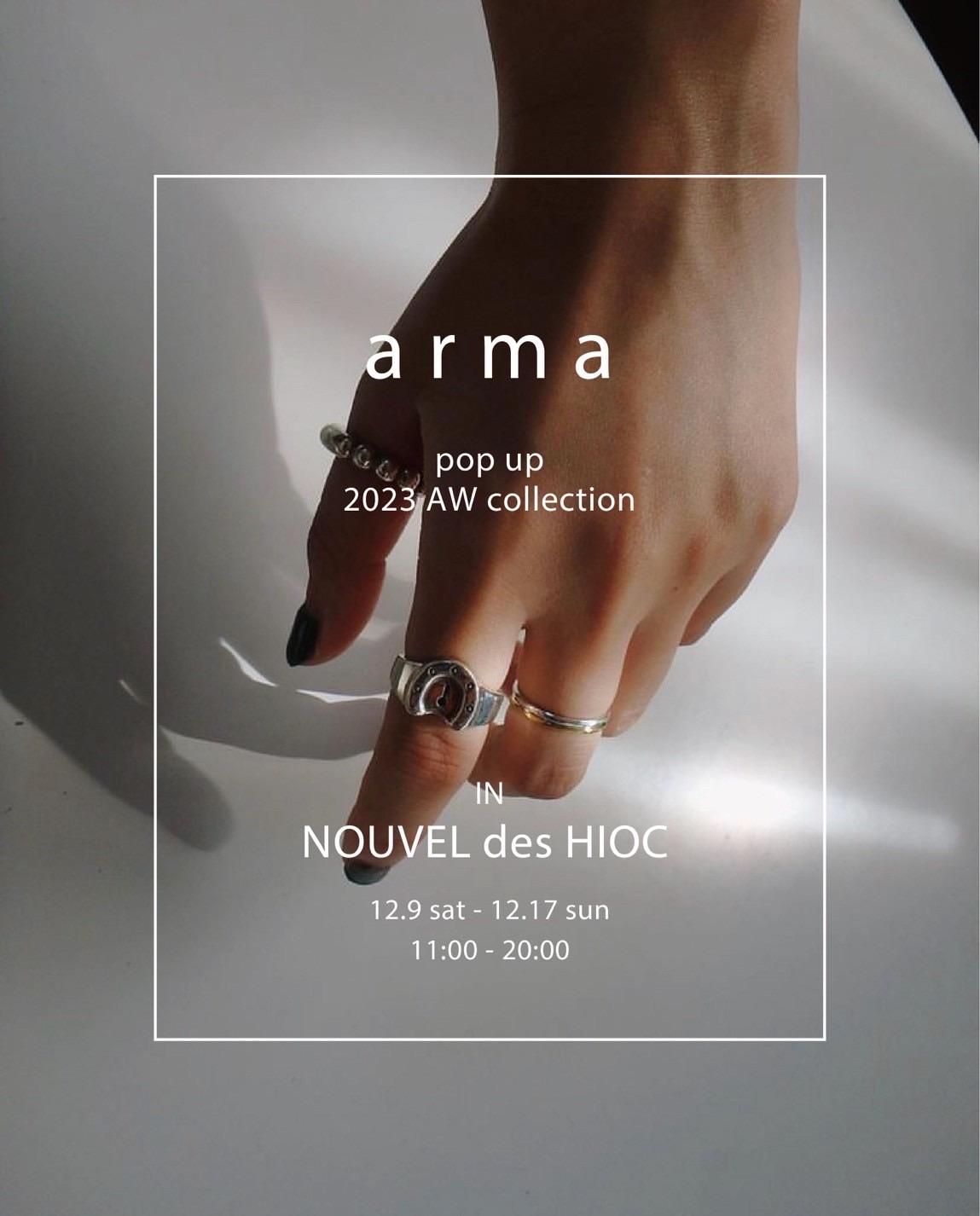 24時までナイター営業 2023年11月22日 イベント詳細 日付: 2023年12月9日 12月9日(土)は24時までのナイター営業日です! 【arma】のPOPUP開催初日となります。 シルバーアクセサリーのサイズオーダー、春に続き第2回目の開催です。 デザイナーも在廊、美味しい飲食店の出店もございますので、ぜひお越し下さい。